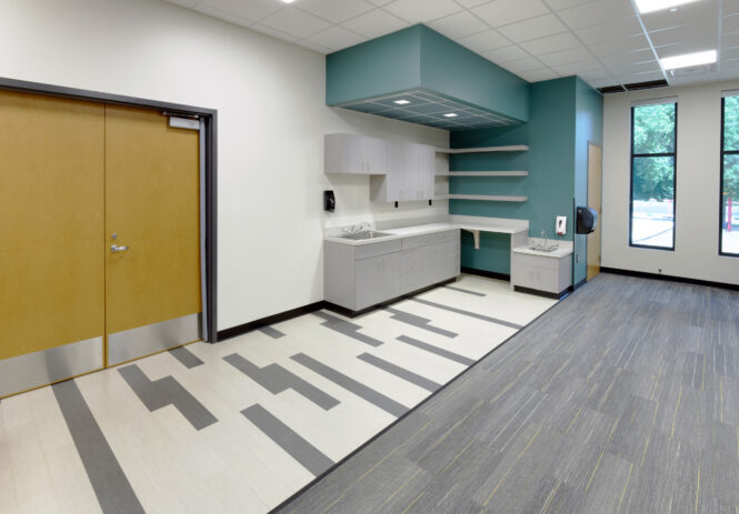 The Cassville Early Childhood Education Center is a 5,750 square foot facility that consists of four classrooms. Each classroom has the ability to open to the adjacent classroom to facilitate cross-learning opportunities. There are several custom design elements throughout the classrooms, including reading nooks for the young learners. The addition was positioned at an elevation that was approximately four feet lower than the existing elementary school. The transitional space between the facilities was used to provide additional flexible learning space. A learning/collaboration stair feature was incorporated along with additional floor space for large group learning.