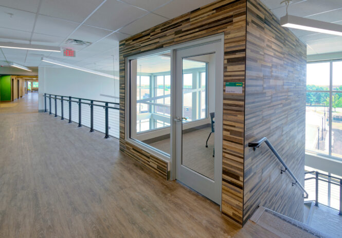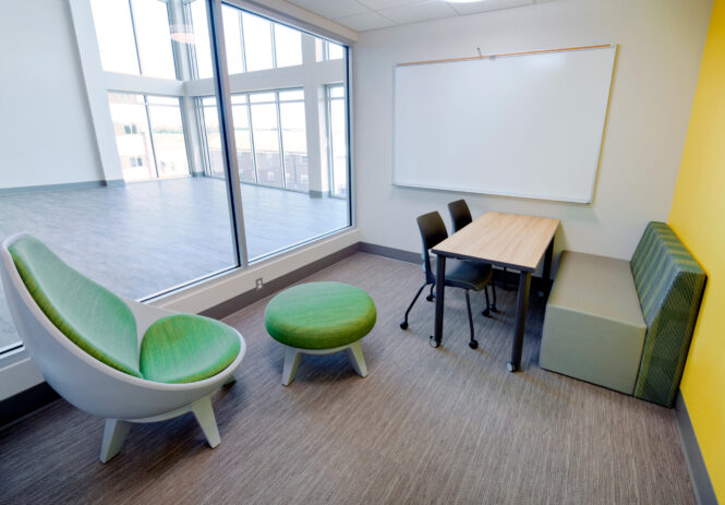 The majority of the MSSU campus was built over former mining grounds. This posed a challenge to the team because several development sites were rejected due to poor soil conditions or the threat of old mine shafts. A unique engineering solution allowed the building to be constructed atop nearly 200 drilled piers that would secure the foundation to bedrock. An additional challenge of meeting the targeted budget, meant that the structure had to be predominantly wood framed, limiting how many stories tall the building could be. These unique circumstances did not stop our team from successfully designing a longer, linear building on top of a narrow site. We were able to make this an extremely cost-effective project while accomplishing all the owner’s goals. Similar projects had set the cost precedent of $324 per square foot, but our team was able to complete this project at the cost of $200 square foot.